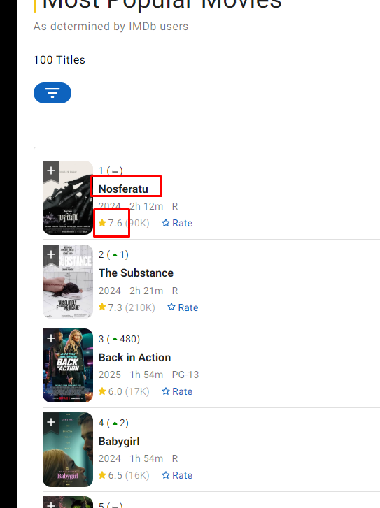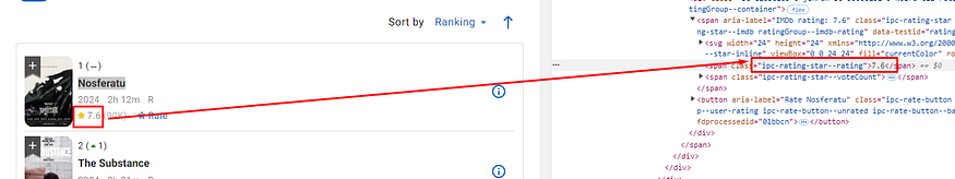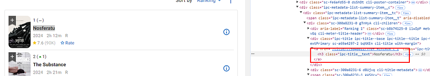 We are going to parse the name of the movie and the rating. Let’s find out the DOM location of each element.