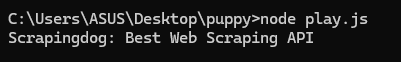 With page.content() method we are extracting the raw HTML from our target webpage. Once you run the code you will see this on your console.