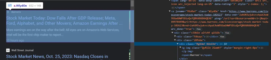Then, we will find and locate the tags and classes for the entities that we need to scrape in this tutorial.