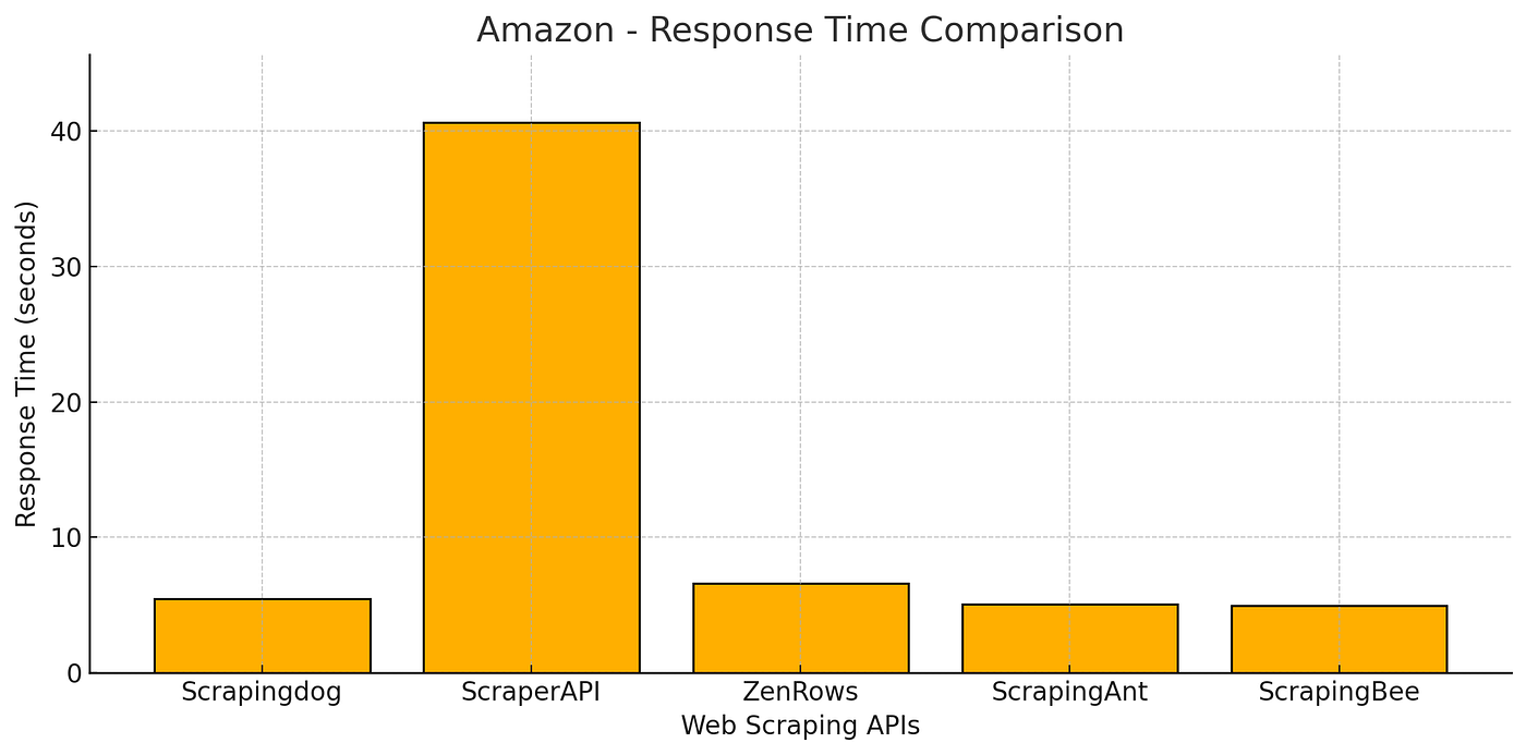 - The average response time while scraping Amazon is 6.58 seconds, and the success rate was 20%.