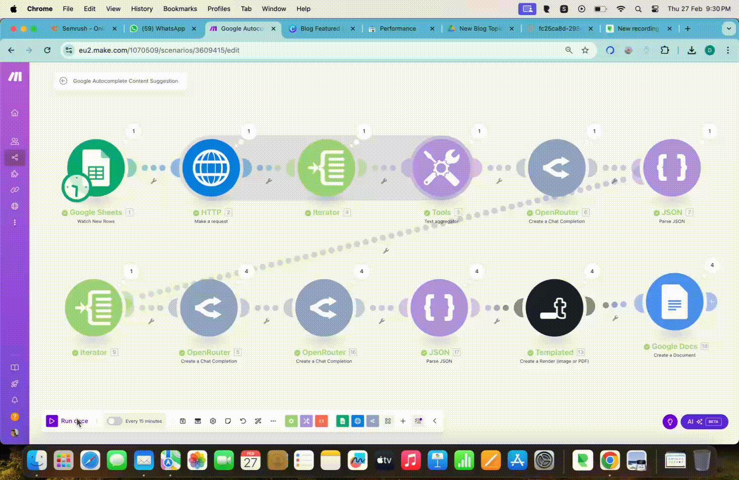 The first module is a Google Sheet module, where we will store our seed keyword & from this keyword, a list of Google suggestions comes & the further modules work on the data.
