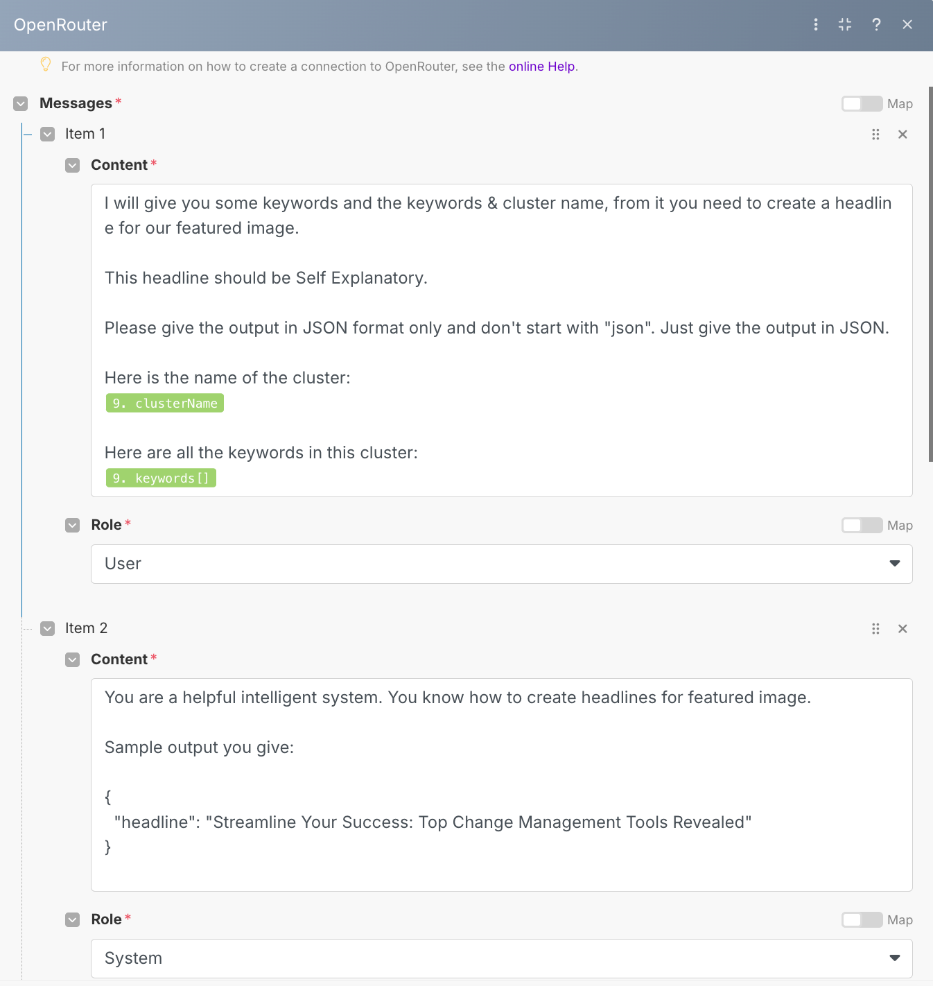 Next, we will be again using an AI module, this module will help us to create a headline of the article.