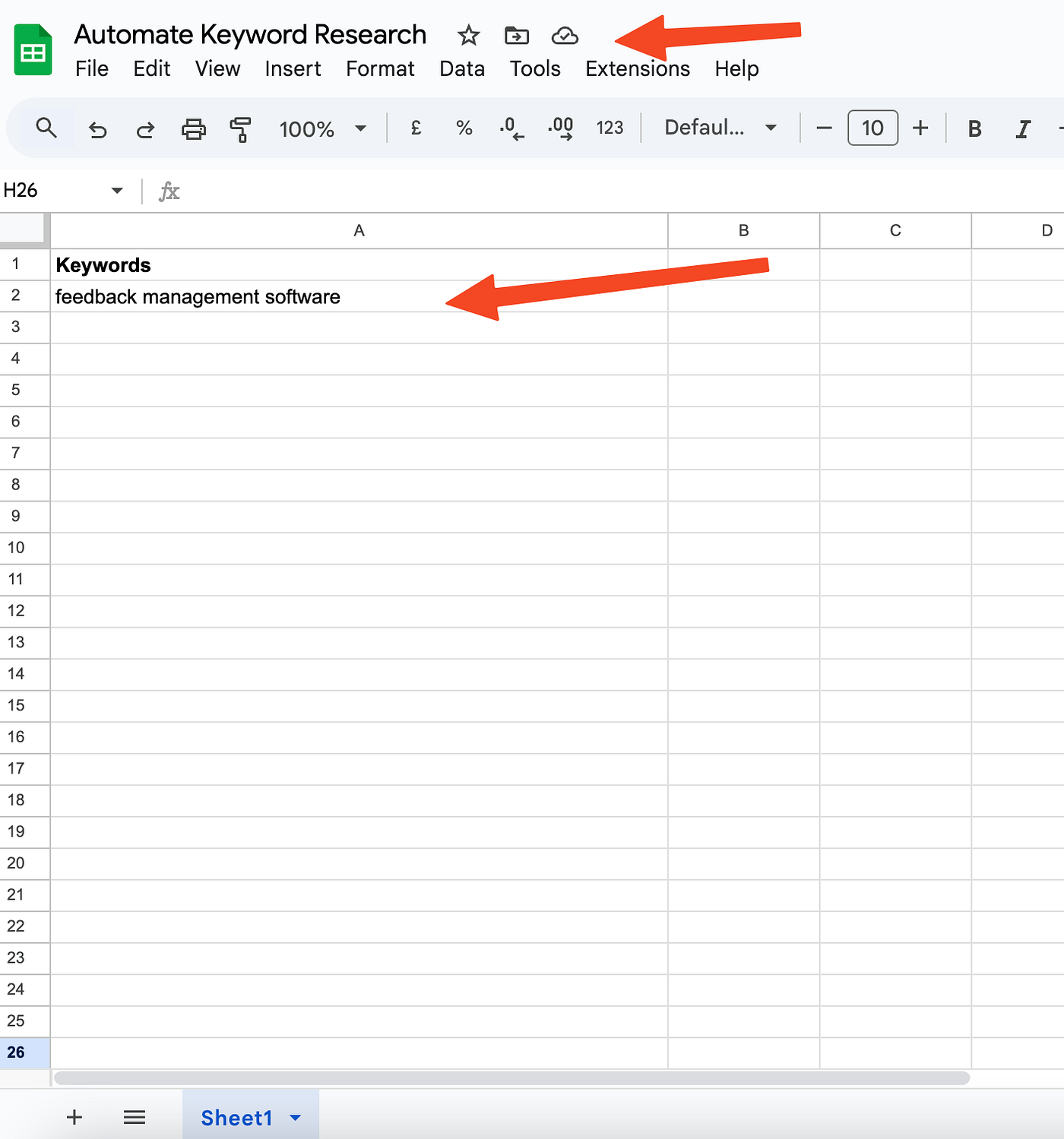 Here is my Google Sheet, with one of the tabs intended to contain all the seed keywords ⬇️