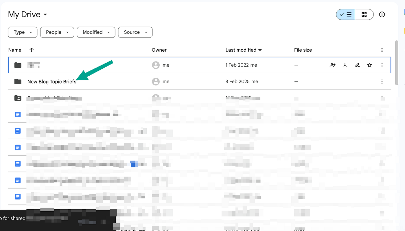 We have already created a separate folder with the name ‘New Blog Topic Briefs’ & all the new topics generated will be saved here.