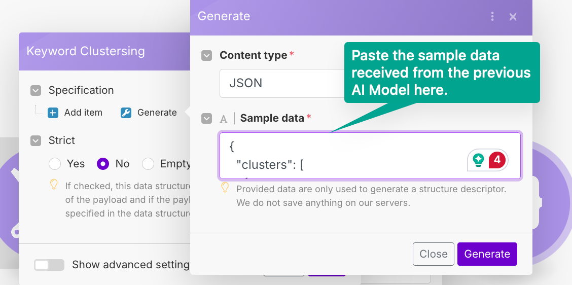 Great!! Now, we will feed this text string to AI module to make keyword clusters. This way we can manage similar/LSI keywords in one cluster and avoid canonicalization when creating our blog post.