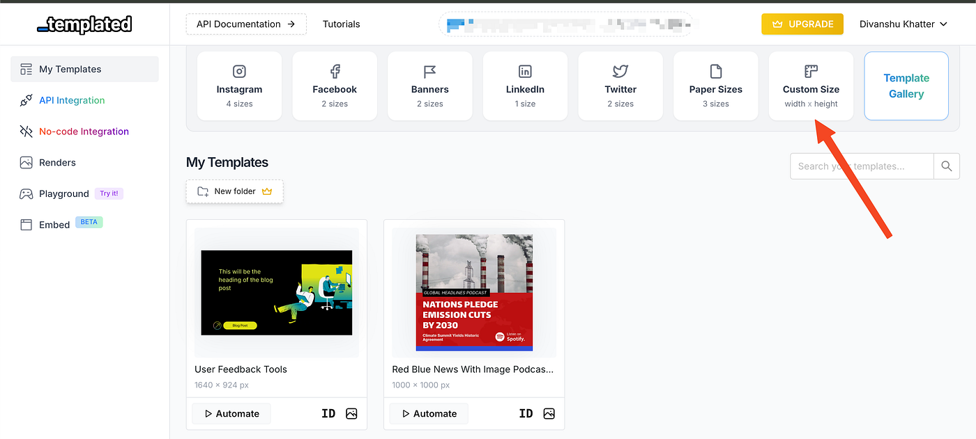 A new size will be created, and here you can use a base template from the templates section of this tool, or you can copy/paste it from any tool of your choice.