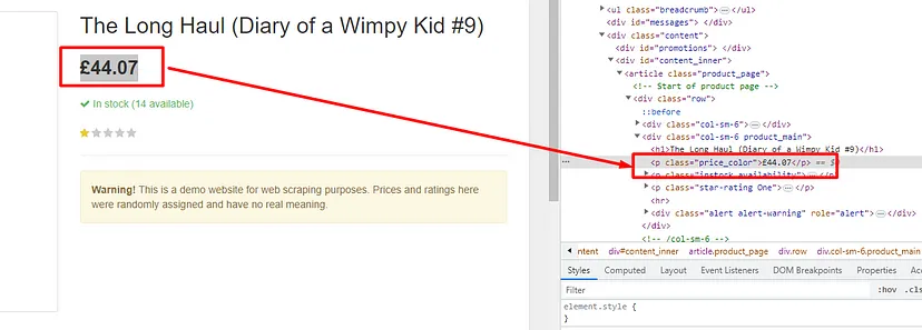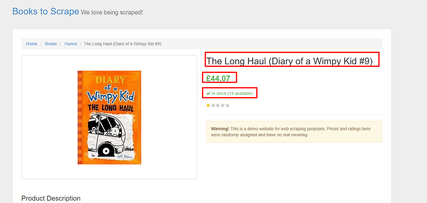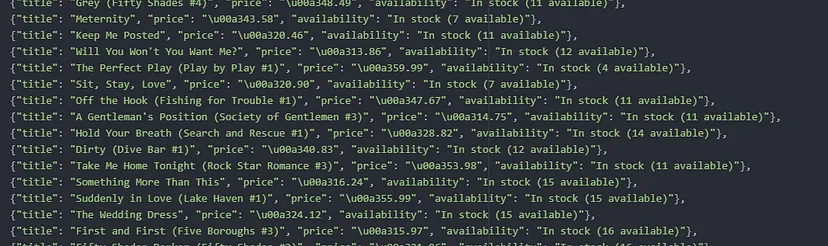We have got the title, price, and availability. You can of course play with it a little and extract the integer from the availability string using regex. But my purpose in this was to explain to you how it can be done fast and smoothly.