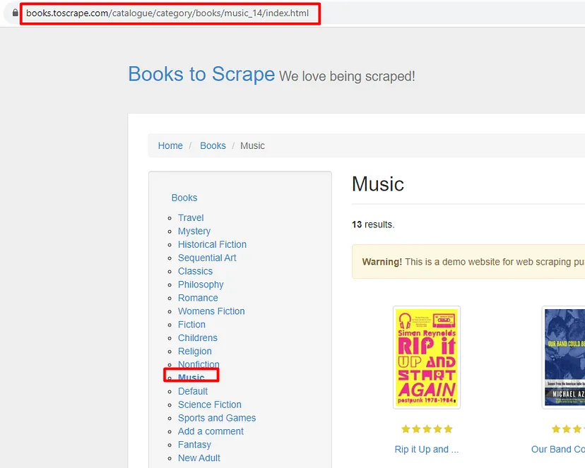 Every URL will have /catalogue, /category and /books. But when we click on a book we only see /catalogue and nothing else.