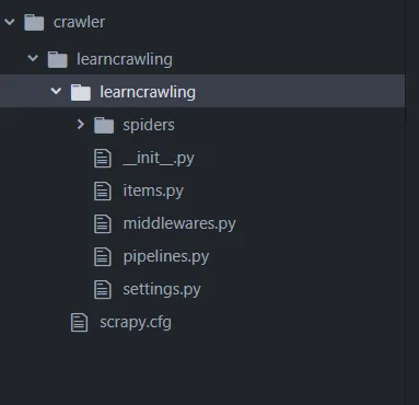 You will see a bunch of other Python files as well. We will cover some of these files later in this blog. But the most important directory here is the spider’s directory. These are actually the constructs that we use for the web crawling process.