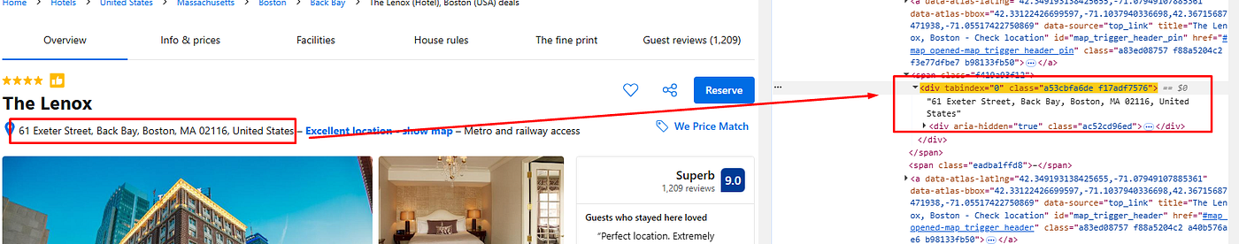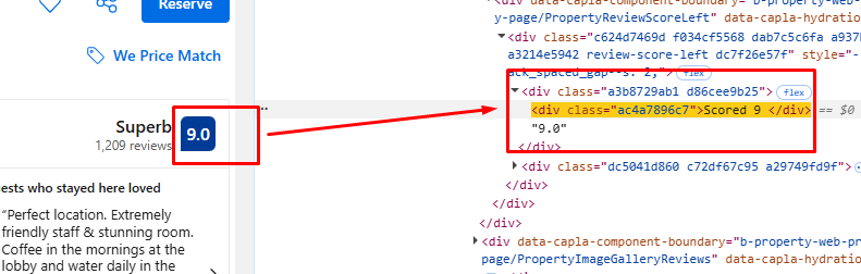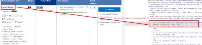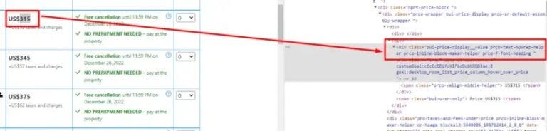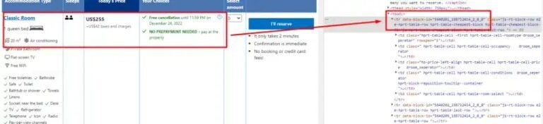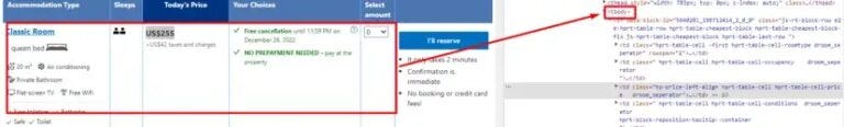 This is the trickiest part of the entire tutorial. Booking.com’s DOM structure is quite intricate and requires careful inspection before you can reliably extract price and room type details.
