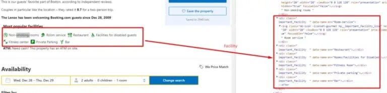 - Python guide to scrape Booking.com hotel data (name, address, rating, room type, price, facilities) using
