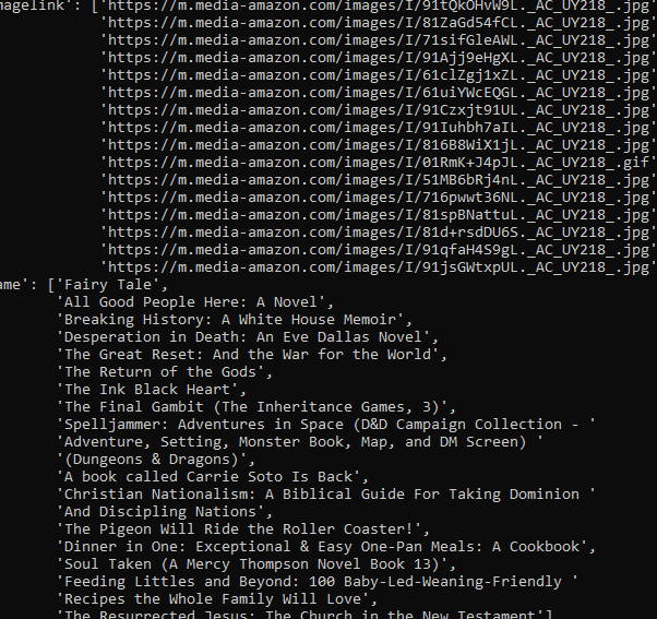 Here we have declared a target_url variable that stores our target URL from amazon.com. Then we declared a header and then finally we made a GET request to our target URL. This is what happens when we run this code.