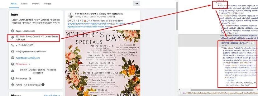 obj["address"] = $(el).find('ul').find('div.x1heor9g').first().text().trim()