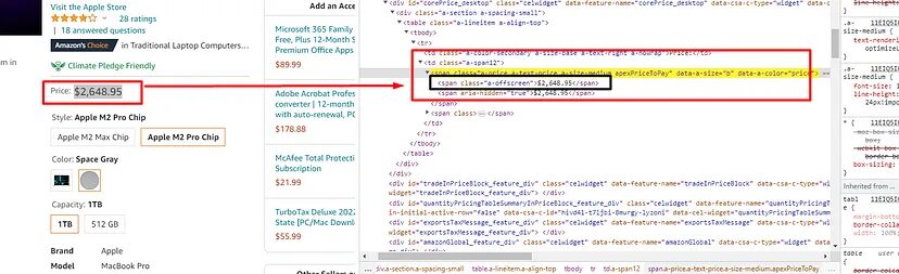 There are two price tags on the page, but we will only extract the one which is just below the rating.