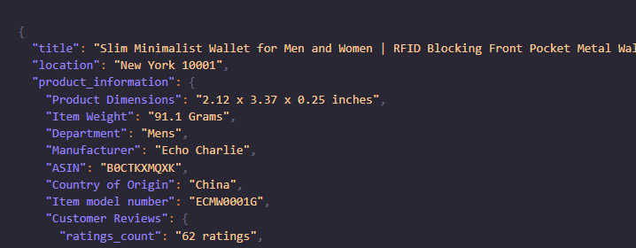 But again this technique is not enough to scrape Amazon at scale. What if you want to scrape millions of such pages? Then this technique is super inefficient because your IP will be blocked. So, for mass scraping one has to use a web scraping proxy API to avoid getting blocked while scraping.